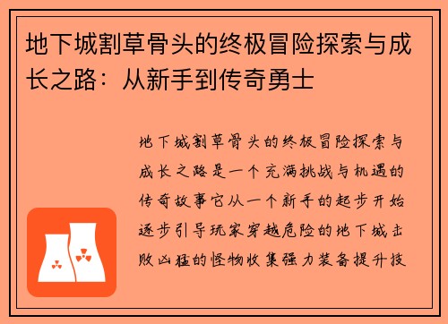 地下城割草骨头的终极冒险探索与成长之路:从新手到传奇勇士