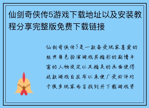 仙剑奇侠传5游戏下载地址以及安装教程分享完整版免费下载链接