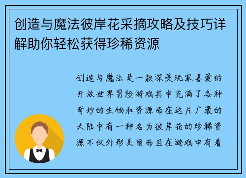 创造与魔法彼岸花采摘攻略及技巧详解助你轻松获得珍稀资源